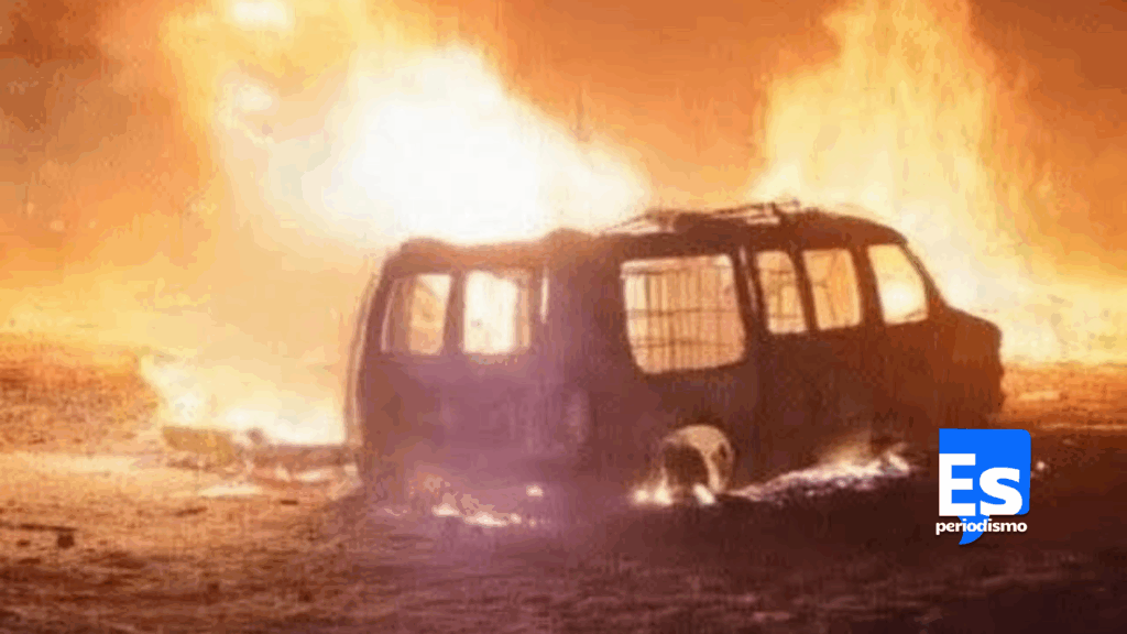 Al arribar al sitio, las autoridades y los rescatistas localizaron dos camionetas completamente envueltas en llamas, las cuales contaban con estructuras metálicas para transportar bidones de combustible.