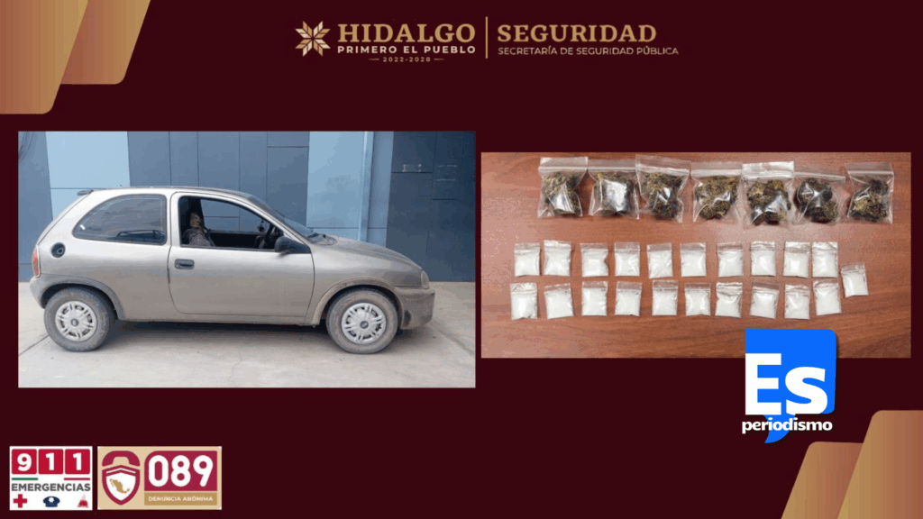 Al sujeto, un hombre de 24 años, le fueron encontradas 28 dosis de presunta droga, entre marihuana y cristal, por lo que fue puesto a disposición de la autoridad ministerial junto con el vehículo asegurado, para el desarrollo de las investigaciones correspondientes.