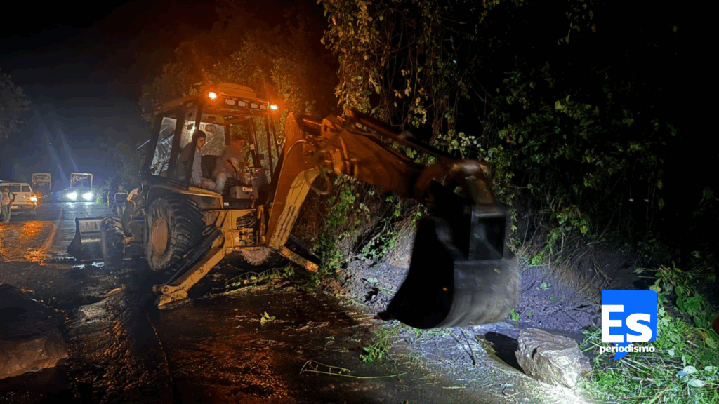 Se destinó maquinaria retroexcavadora Caterpilar, para dar vialidad con la solución temporal de pivotar la línea contra el talud, y se pueda dar acceso a unidades pequeñas y medianas.