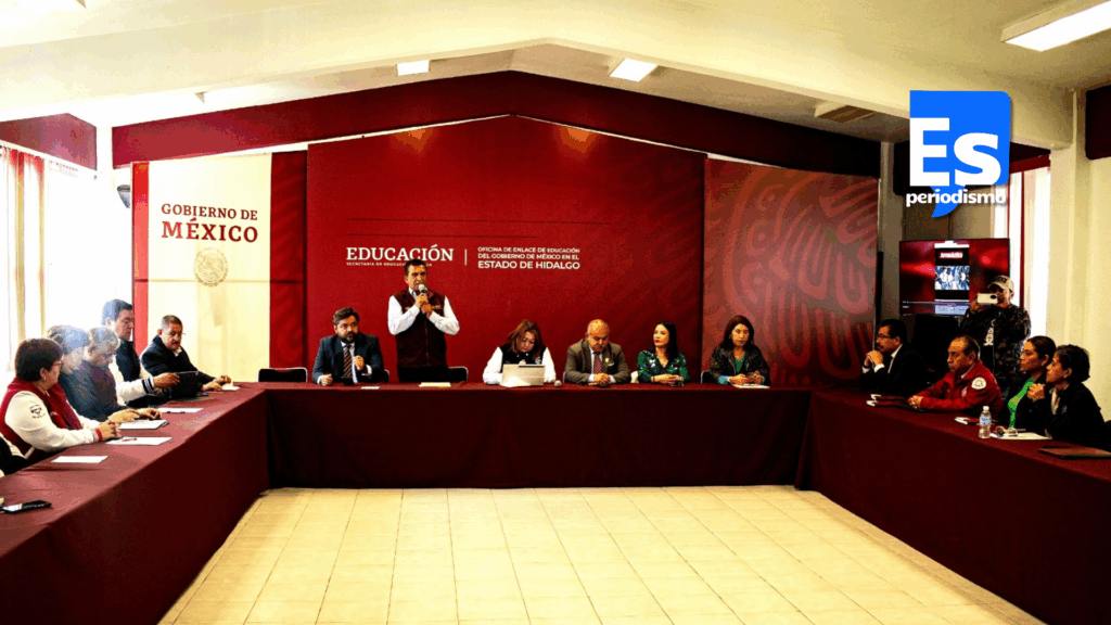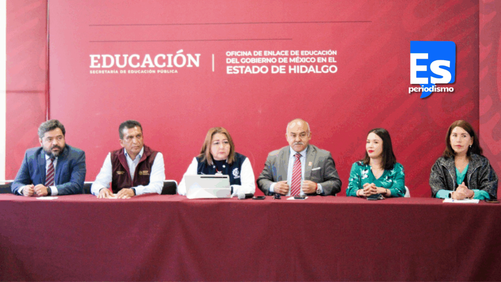 El encuentro con los medios de comunicación fue encabezado por la maestra Griselda Martínez Nepamuceno, Comisionada Responsable de la Dirección General de Educación Tecnológica Industrial (DGETI), en Hidalgo, acompañada por Abraham Mendoza Zenteno, delegado de Programas para el Desarrollo en la entidad, y José Nereo Lugo Moreno, titular de la Oficina de Enlace Educativo del Gobierno de México en Hidalgo.