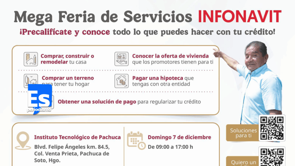 El INFONAVIT realizará su última Mega Feria de Servicios en el municipio de Pachuca, con el objetivo de acercar sus diferentes productos de financiamiento a las y los derechohabientes.