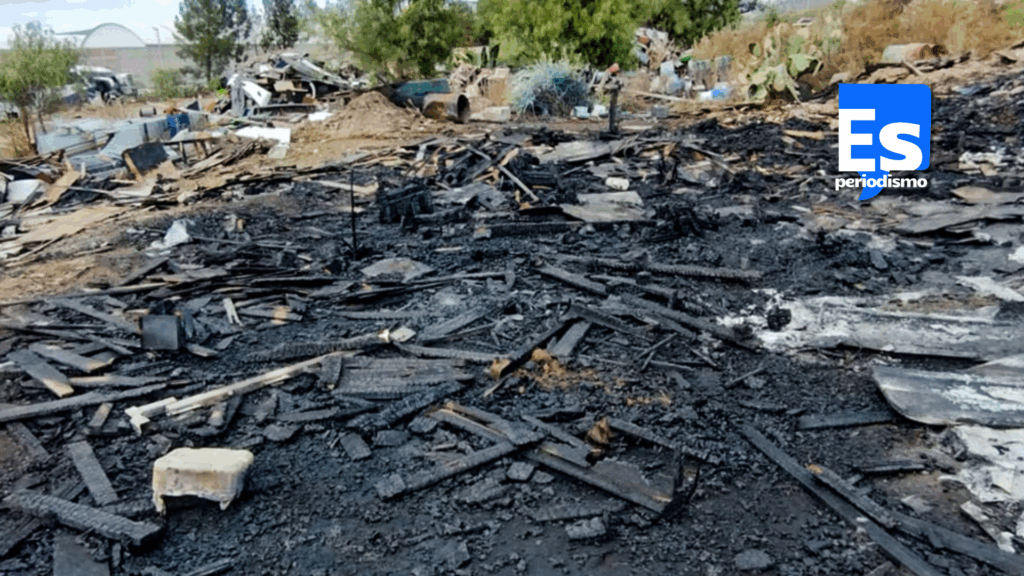 Durante la diligencia, en el área donde se originó el incendio, se localizaron residuos peligrosos sobre suelo natural, como envases que contenían materiales peligrosos y refacciones automotrices usadas, derivadas de las actividades de reparación de unidades de transporte siniestradas.