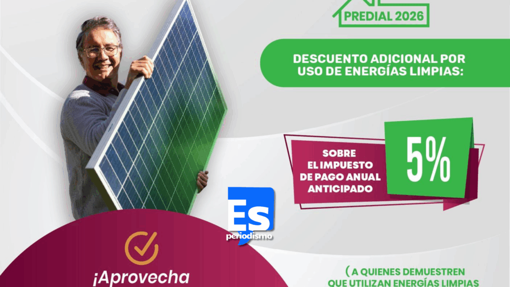 Podrán obtener un 5% de descuento adicional, las personas propietarias de inmuebles que acrediten el uso de energías limpias, conforme a los lineamientos establecidos.