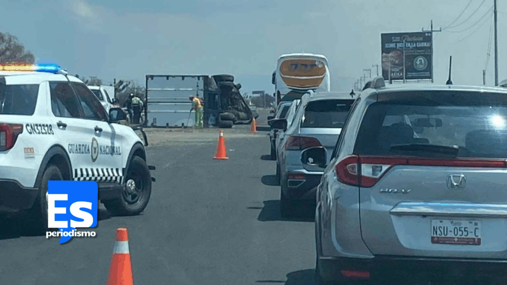 Tolcayuca.- Un tráiler volcó sobre la carretera federal México–Pachuca, a la altura de San Mateo, pasando la comunidad de Los Ángeles, lo que generó afectaciones importantes a la circulación en dirección a Pachuca.
