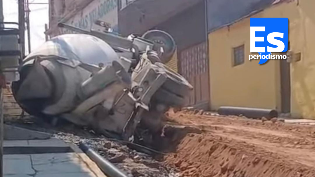 El incidente ocurrió en la calle Mariano Arista, donde, según reportes de la Polinuaban los esfueros por cía Estatal, el operador del vehículo de trabajo realizó una maniobra de reversa para descargar mezcla, pero le ganó el peso y se precipitó a una zanja.
