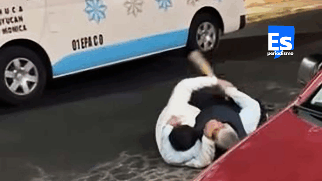 Primero, los operadores se hicieron de palabras altisonantes y reclamos por hacerse competencia, aunque pertenecen a la misma ruta, de acuerdo a la cromática que se encuentra en la carrocería de los automotores, pero finalmente llegaron a los golpes.