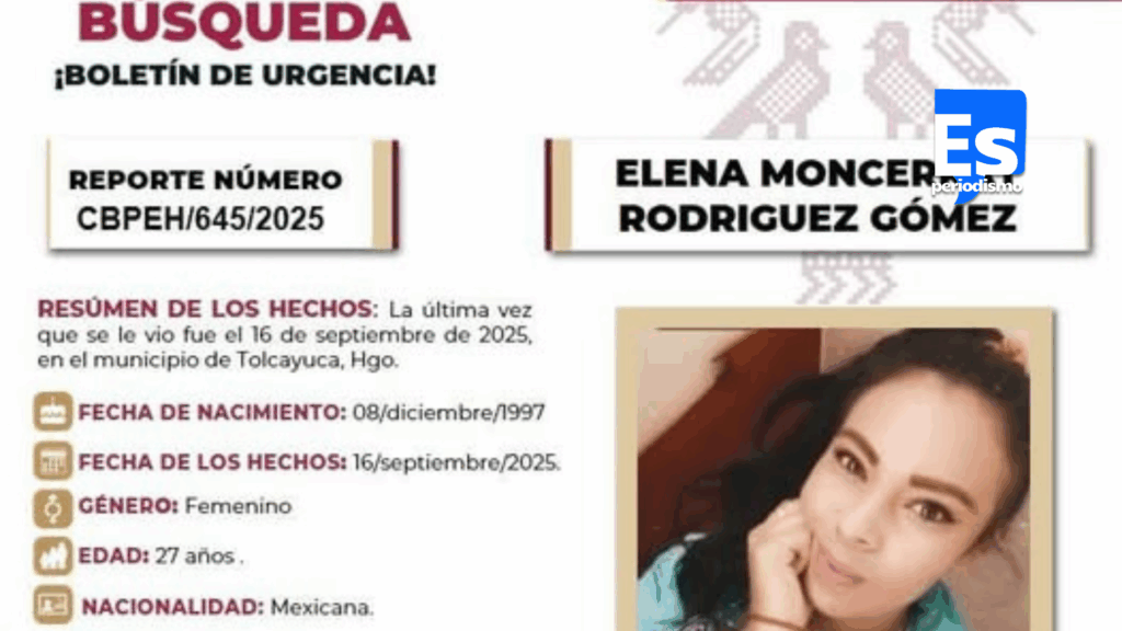 Tolcayuca.- Continua la búsqueda de Elena Moncerrat Rodríguez Gómez, por parte de familiares y amigos, luego de que fue reportada desaparecida desde el pasado 16 de septiembre, en calles de este municipio.