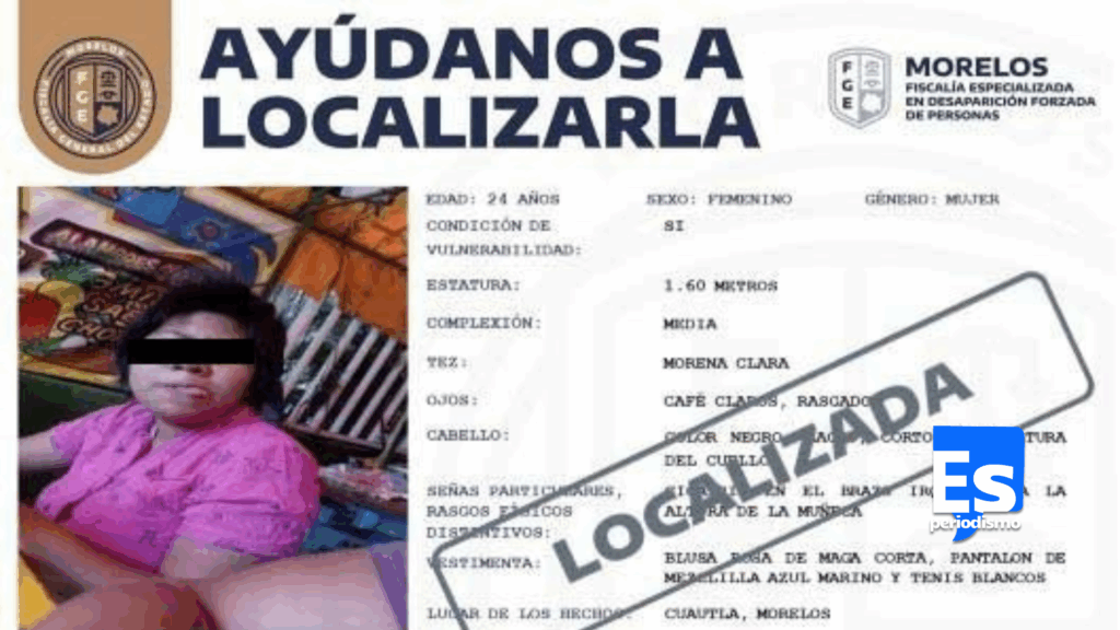 Por lo anterior, las autoridades confirmaron que la persona había sido reportada como desaparecida en el estado Morelos, y a la vez reiteraron el llamado a la ciudadanía para que continue colaborando con información que ayude a la localización de personas no localizadas y/o desaparecidas.