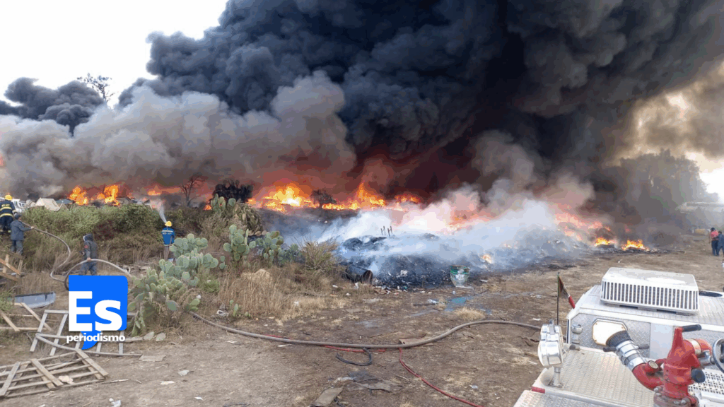 Mineral de la Reforma.- Fuerte incendio de pastizales y basura se suscitó, cerca de la carretera Pachuca-Sahagún, por la imprudencia de quemar desperdicios en el interior de las instalaciones de la empresa de autobuses Estrella Blanca, la tarde de este jueves.