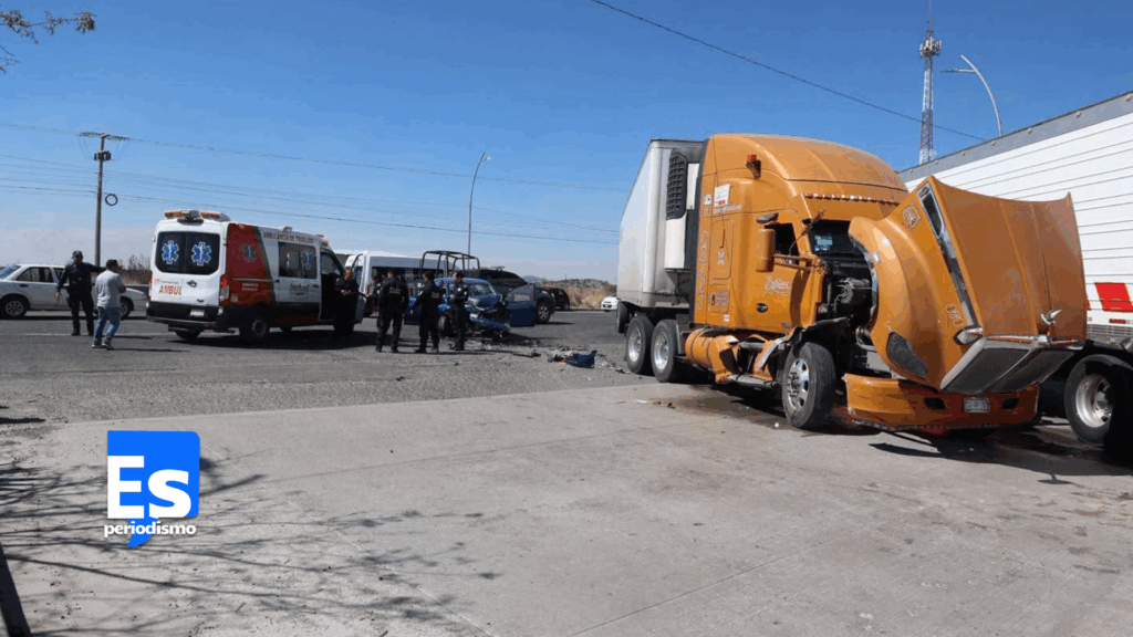 El reporte policial informó que, la unidad Kenworth T680, color naranja, con caja seca, estaba dando vuelta para ingresar al parque industrial, cuando el Nissan Versa, color azul, placas del Estado de México, que circulaba a exceso de velocidad, no alcanzó a frenar y se impactó contra la parte trasera.