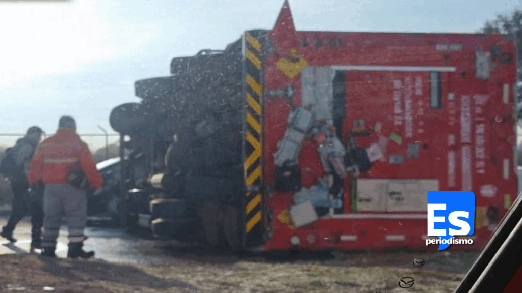 De acuerdo con la versión del conductor, perdió el control de la dirección hasta quedar recostado sobre su costado izquierdo, lo que obligó a cerrar parcialmente la vialidad para evitar riesgos adicionales.