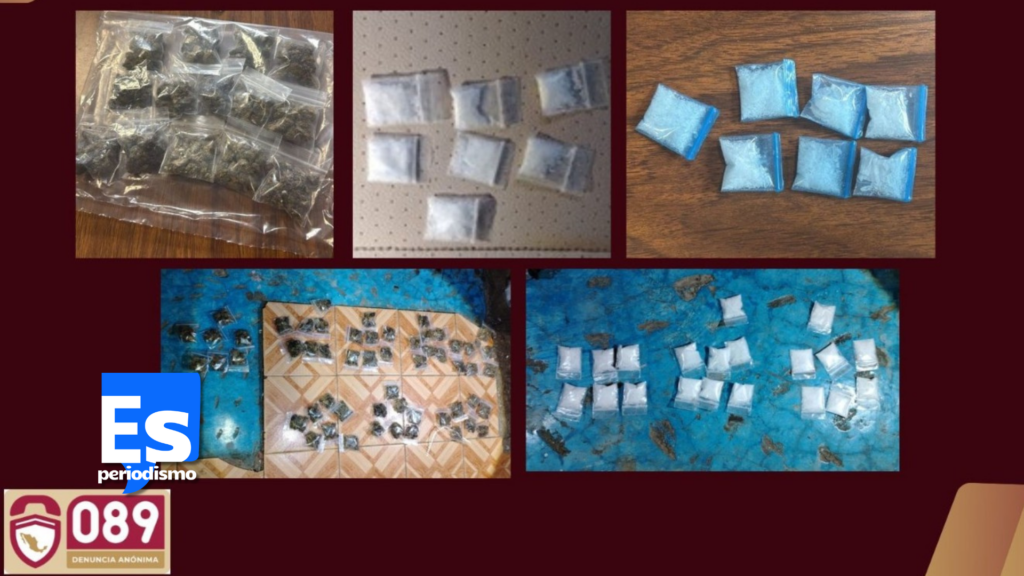 Durante las intervenciones, elementos estatales decomisaron un aproximado de 766 dosis, entre hierba seca, con las características propias de la marihuana y sustancia blanca granulada, con las características del cristal, ambas listas para su distribución.