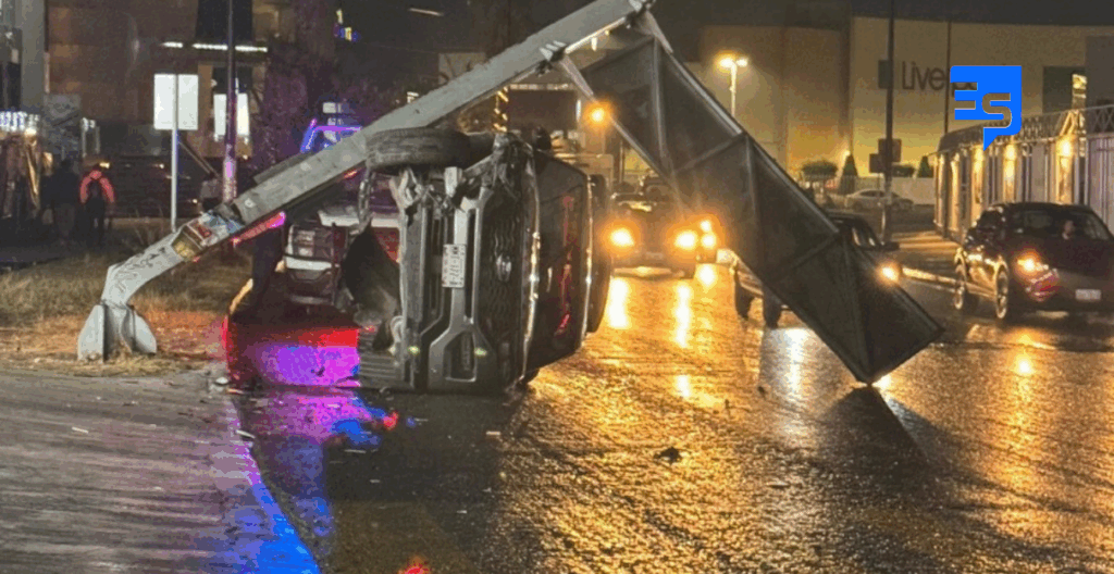 Aparatoso accidente vial se suscitó en el camino Real de La Plata, en la Zona Plateada, Pachuca, dejando graves daños al equipamiento urbano municipal, y una camioneta destruida.