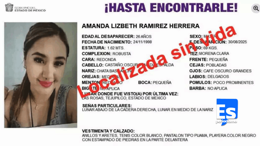 Amanda Lizbeth, de 26 años, fue reportada como desaparecida el 30 de agosto y hallada sin vida el 5 de septiembre.