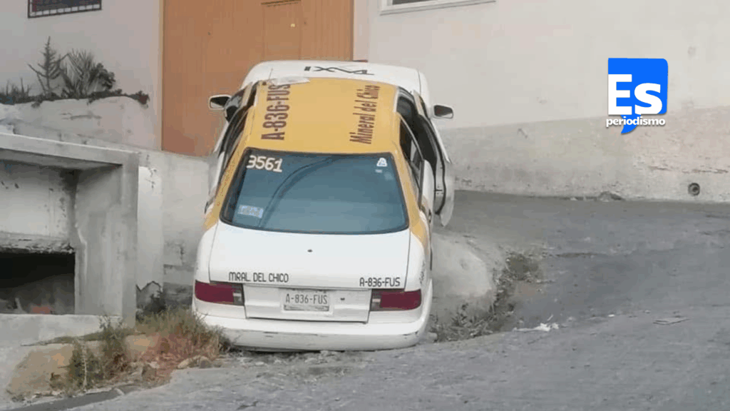 La unidad del servicio público del sitio Mineral del Chico, se explicó, descendía en reversa por las estrechas calles, pero finalmente la unidad quedó atorada.