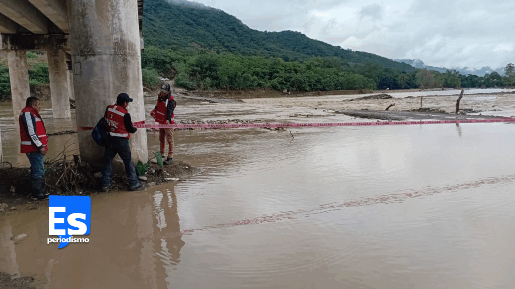 Autoridades municipales señalaron que los equipos de rescate y Seguridad Pública, mantienen un monitoreo permanente del nivel del río y del estado del camino.