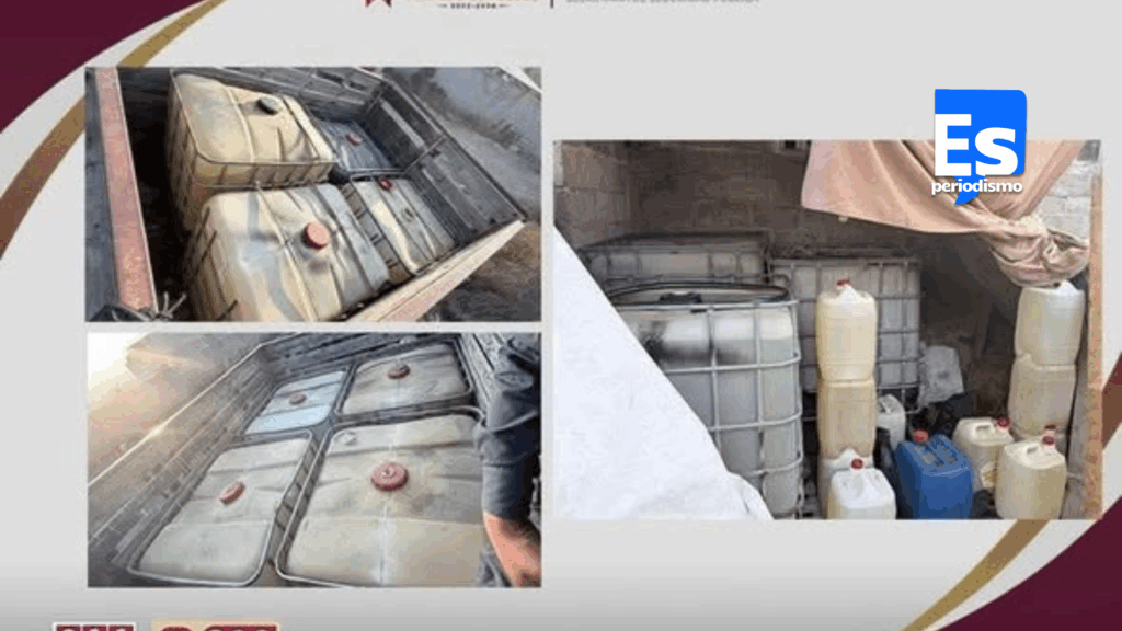 En el lugar fueron recuperados siete mil 300 litros de hidrocarburo y se aseguraron diez bidones con capacidad de mil litros cada uno, presuntamente destinados al almacenamiento y distribución ilegal de combustible, lo que permitió inhibir su circulación y los riesgos asociados a esta actividad ilícita.