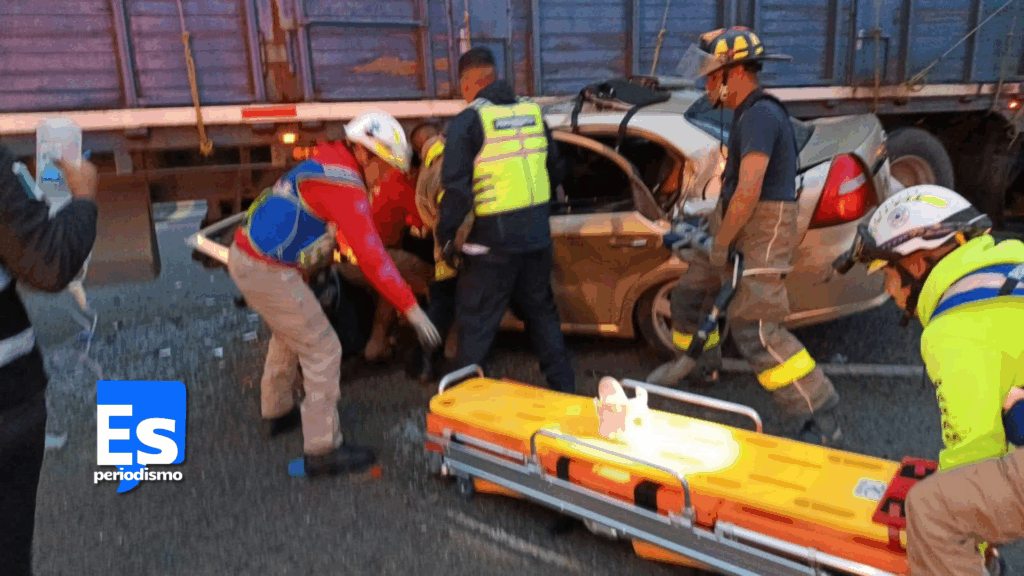 De acuerdo con versiones de policías y paramédicos en el lugar del impresionante accidente, pudo ser factor la imprudencia del operador de un tractocamión, combinada con la distracción del conductor de un automóvil compacto que circulaba con velocidad inmoderada y sin guardar la distancia apropiada.
