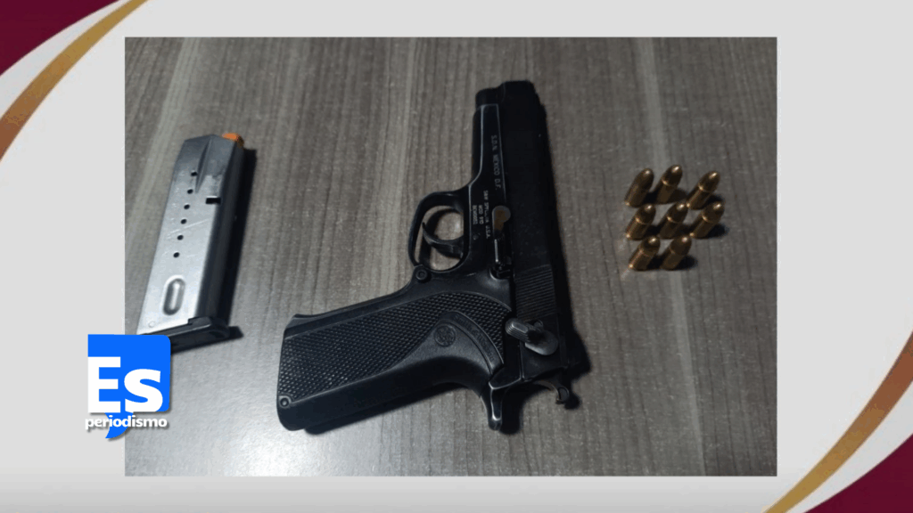 Durante la intervención del inculpado, se le decomisó un arma de fuego corta, calibre 9 mm, abastecida con ocho cartuchos útiles.