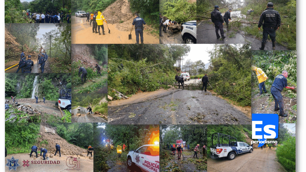 Mediante recorridos de prevención, elementos de la Policía Estatal, mandos coordinados y el H. Cuerpo de Bomberos, brindan apoyo en remoción de escombro, piedras y lodo, atendiendo los derrumbes que se han presentado en los 30 municipios del estado más afectados.